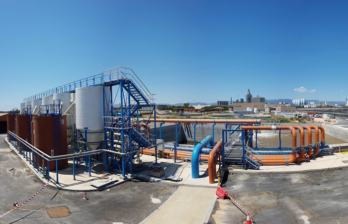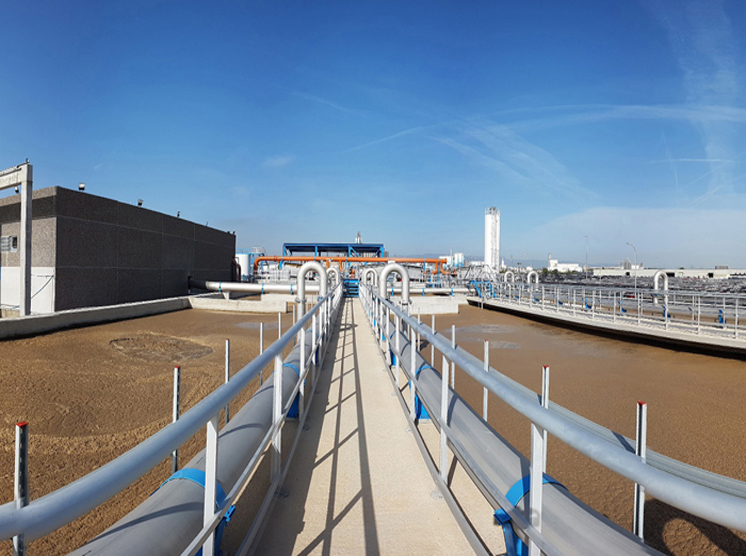 El proyecto consiste en el diseño, construcción, explotación y mantenimiento de un tratamiento terciario para interceptar el agua depurada de cada una de las industrias anexas al proyecto para la adaptación a parámetros de la normativa europea DEI de emisiones industriales de sus propios vertidos al emisario marino. La planta depuradora industrial consiste en 3 balsas de homogeneización de vertidos, un posterior bombeo al reactor biológico para depuración del agua y un último tratamiento de ultrafiltración previo al vertido de nuevo al emisario marino. Paralelamente tiene una línea de fangos para tratar los fangos generados en la misma cuyo último proceso es un filtro prensa para desecar los fangos y transportarlos a gestión.